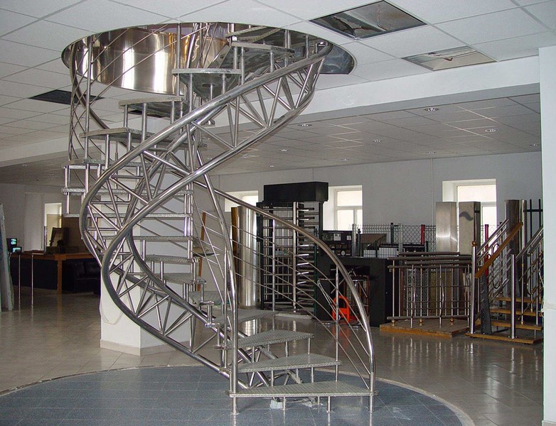 Из нержавеющей стали получаются как традиционные, прямые и Г-образные, так и винтовые лестницы. Клиент самостоятельно выбирает подходящий вариант, исходя из выделенного бюджета и собственных пожеланий.
