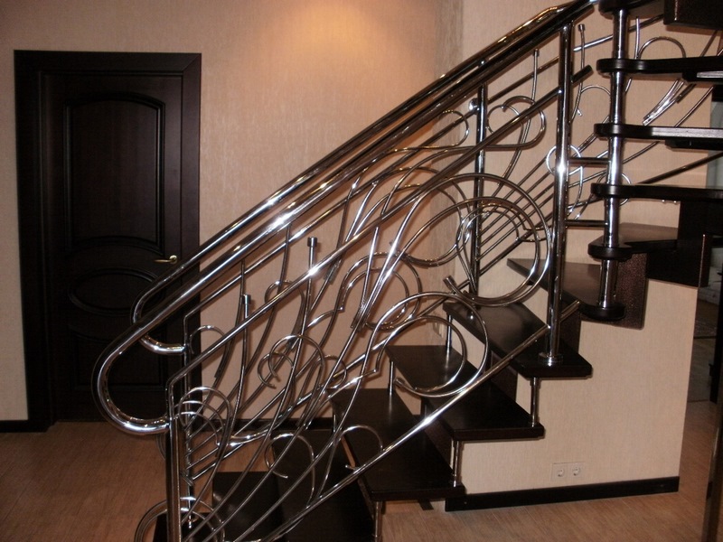 Нержавеющая сталь — это один из лучших материалов для сборки лестниц. Она очень прочная, но при этом есть возможность придавать ей интересные формы. Конечно, во всей красе нержавейка проявляет себя отполированной до блеска.