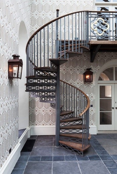 Начнем расчёт винтовой лестницы с основного материала. Оптимальным считается нержавеющая сталь. Как правило, она хромированная и идеально подходит в большинство интерьеров. Однако, для классического оформления лучше подойдет художественная ковка. Этот вариант дороже, но это не станет лишними тратами.
