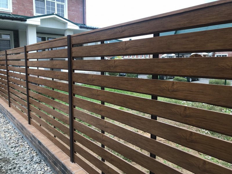 Если и у Вас подобная ситуация, лучшим выбором станет забор из евроштакетника. Конечно, есть более закрытые варианты данных конструкций, но в основном они служат в качестве сквозного ограждения.